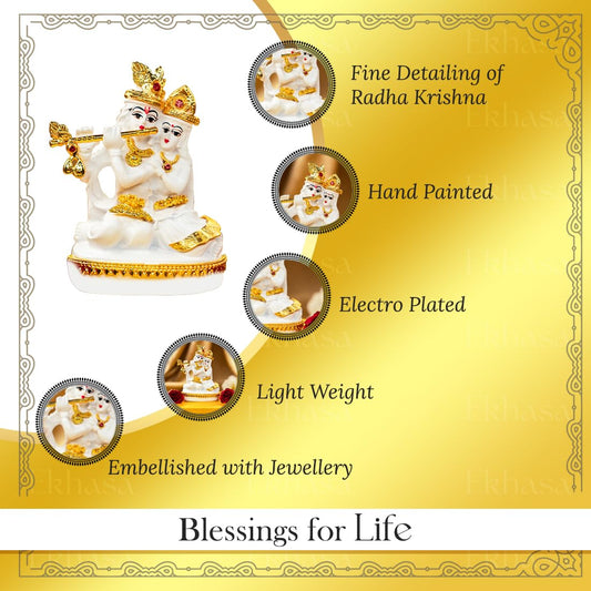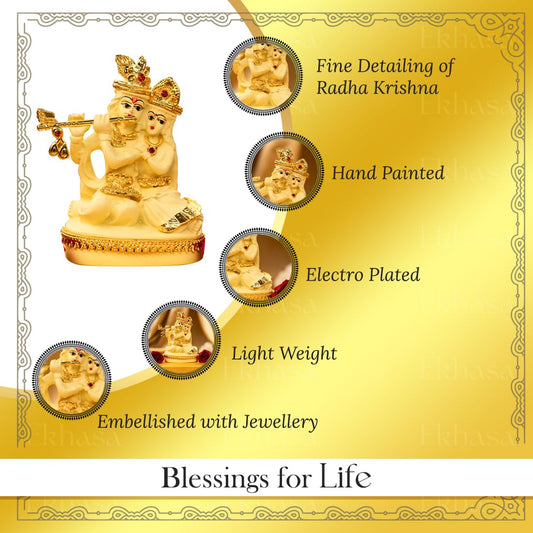100% Pure Resin Radha Krishna Murti (Size: 7.5 cm) | Radha Krishna Statue for Car Dashboard | Radha Krishna Idol for Gift | Radhe Krishna Idol for Home Decor, Office Decor, Pooja Room