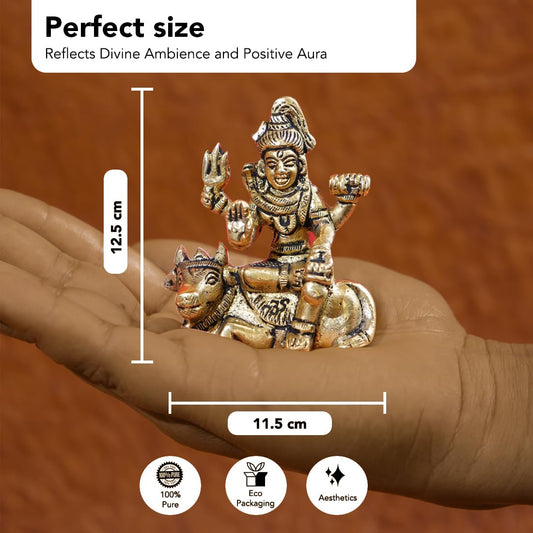 100% Pure Brass Lord Shiva Idol with Nandi for Home (Size: 6.5 cm) | Lord Shiva Statue for Car Dashboard, Pooja Room, Home Decor and Office Desk | Bholenath Murti | Shiv Ji Murti on Nandi Cow