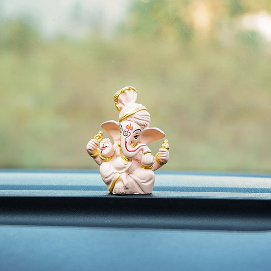 Ganesh Idol for Car Dashboard - Peach | Traditional Statue | 94g