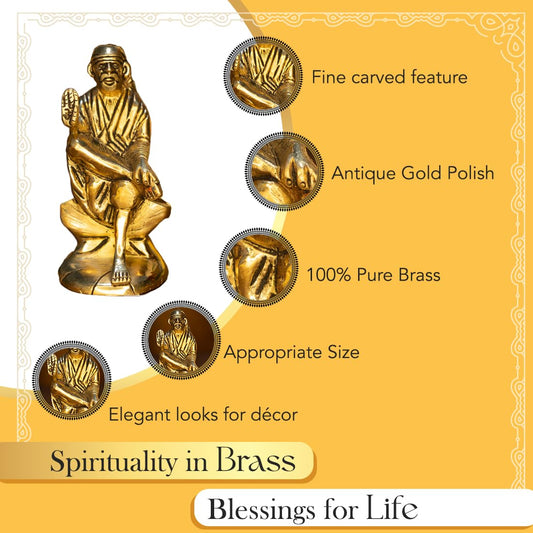 100% Pure Brass Sai Baba Statue for Home (Size: 12.8 cm) | Shirdi Saibaba Idol for Office Desk, Car Dashboard & Pooja Room | Sai Baba Murti for Gift | Ideal Gift for All Occasions