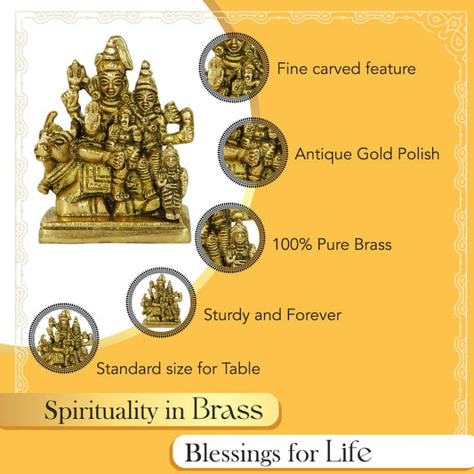 100% Pure Brass Shiv Parivar Murti (8.5 cm) | Shiv Parvati Murti for Car Dashboard, Pooja Room, Home Decor & Office Desk | Shiva Parvati Idol | Mahadev Bholenath Pariwar Statue