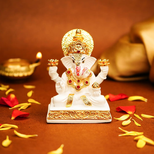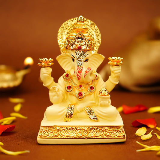 100% Pure Brass Ganesha Idol (Size: 5.5 cm) | Pital Ganesh Murti for Pooja Room, Home Decor, Office Desk and Car Dashboard | Vinayagar Statue for Diwali Puja