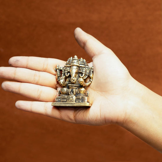 100% Pure Panchmukhi Brass Ganesha Idol (Size: 7 cm) | Pital Ganesh Murti for Pooja Room, Home Decor, Office Desk and Car Dashboard | Vinayagar Statue for Diwali Puja