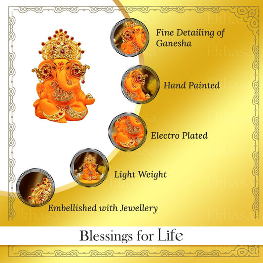 Ganesh Idol for Car Dashboard | Ganpati Idol for Cars | Vinayak Idols for Car Dash board & Home Decor | Ganapathi Idol for Home | Vinayagar Statue | Ganpati Ganesh ji for Office Desk (Mango)