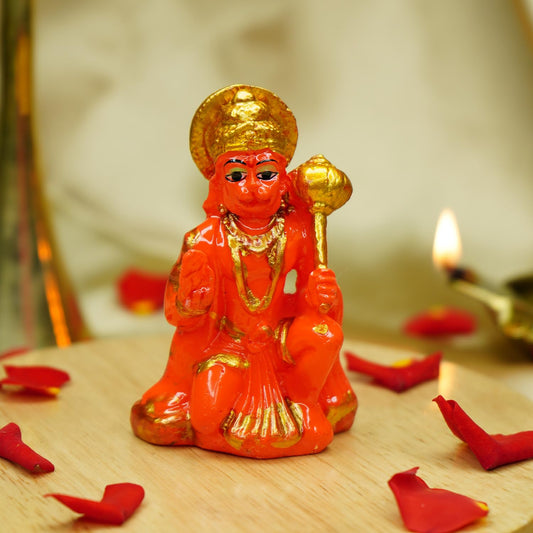 8 cm Hanuman Ji Murti - Symbol of Strength and Devotion | For Home Puja, Car Dashboards | Orange
