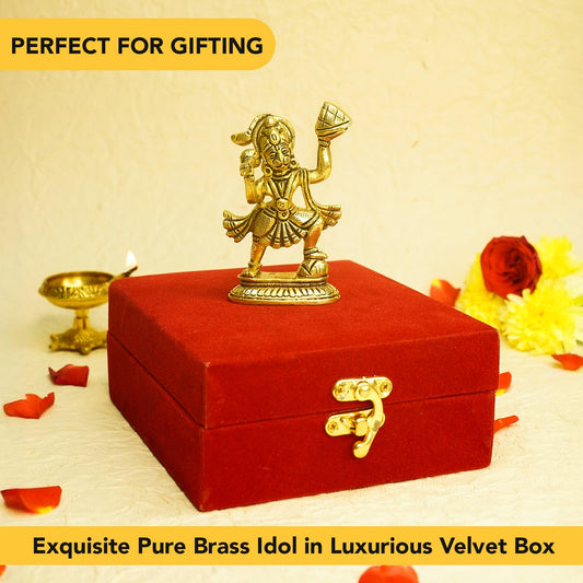 Brass Hanuman Ji Idol in Gift Box - Timeless Religious Symbol | 490g | Traditional Gold | Perfect for Gifting