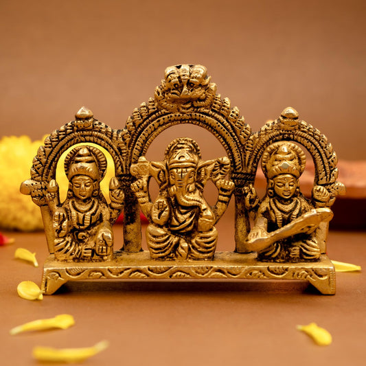 Brass Ganesh Laxmi Saraswati with Gift Box: Divine Idol for Home Blessing | Standard Size | Gold