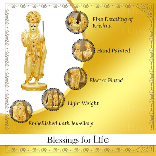 Aura Series Big Size Marble Dust Lord Krishna Idol with Flute (1 Feet) | Handpainted Shree Lord Krishna Statue for Home Decor | Resin Kanha Ji ki Murti for Office | Sri Krishna Idols for Gift