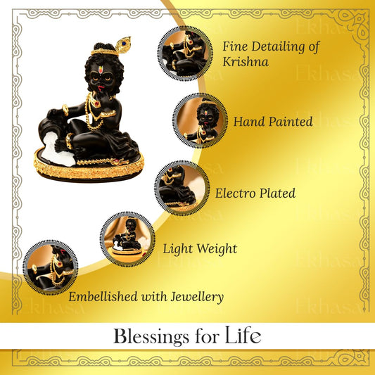 Aura Series Marble Dust Bal Gopal Murti (5 inch) | Gold Plated Laddu Gopal Murti for Pooja Room | Resin Baby Krishna Idol for Home | Bal Krishna Idol | Sri Krishna Idols Gift | Makan Chor Idol