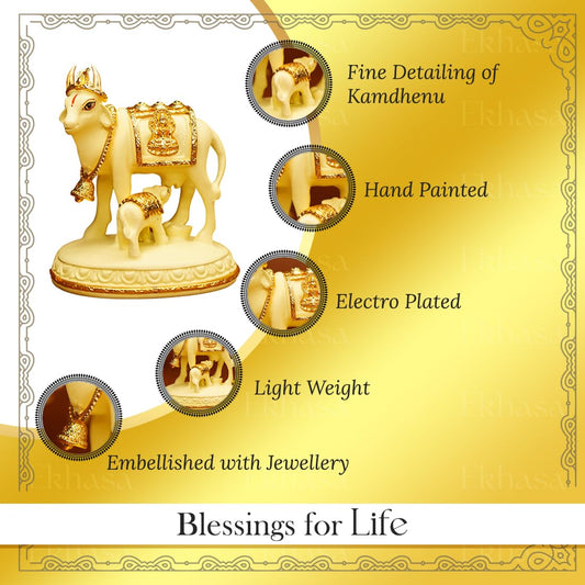 Kamdhenu Cow with Calf Vastu Idol | Gomatha Cow and Calf Statue for Pooja | Resin Cow Calf Idol for Home Decor, Vastu, Feng Shui, Pooja Room, Good Luck, Gift for Griha Pravesh Ceremony