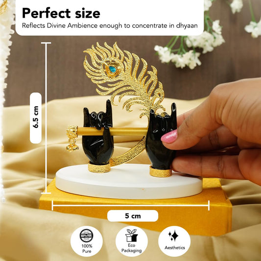 Lord Krishna Hands with Flute Idol (Small Size) | Krishna Flute Hand Statue | Krishnaji Divine Hand Idol with Flute, Peacock Feather | Krishna Statue for Car Dashboard & Griha Pravesh Gift