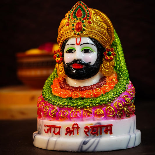 Aura Series Marble Dust Khatu Shyam Ji Murti | Shyam Baba Murti (Handpainted, Resin, Size: 6 inch)