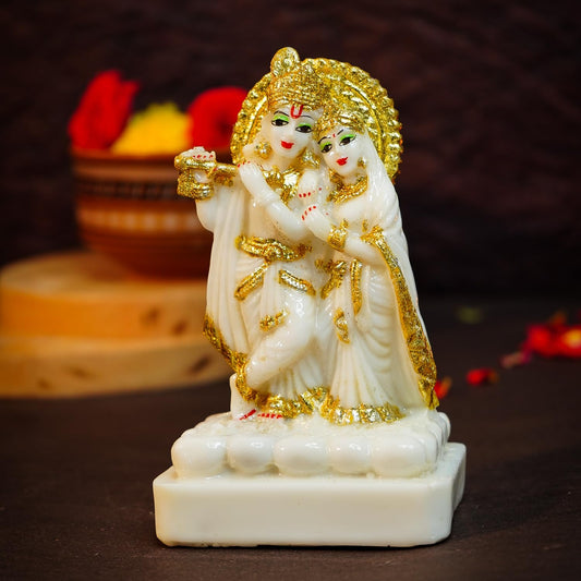Aura Series Marble Dust Radha Krishna Murti (5 inch) | Gold Plated Radha Krishna Statue | Resin Radha Krishna Idol for Gift | Radhe Krishna ki Murti for Pooja | Radha Krishna for Home Decor