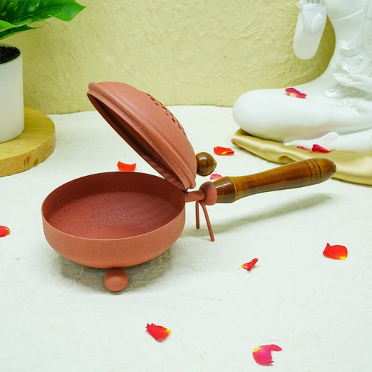Dhoop Dani: Metal Incense Holder with Wooden Stand | Gold | Standard Size