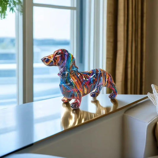 Cute Dachshund Dog Show Piece: Decorative Resin Sculpture | Multicolour | Medium