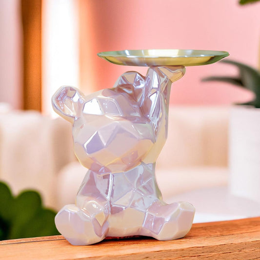 Bear Showpiece with Tray: Functional Key Holder & Piggy Bank | Medium | Pink