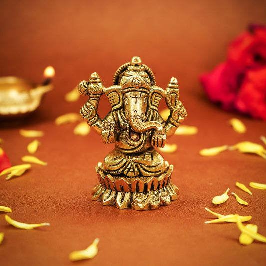 Brass Ganesha Idol in Luxury Red Velvet Box | Standard Size | Gold