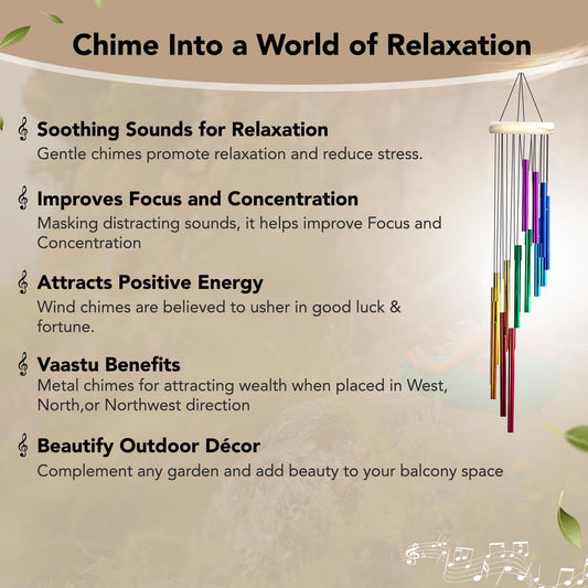 Positive Energy Aluminium Wind Chimes for Home, Balcony, Outdoor, Garden Decoration | Windchimes bells for Vastu, Feng Shui, Serene Music Sound & Positive Vibes | Deep Tone Windchime for Gift