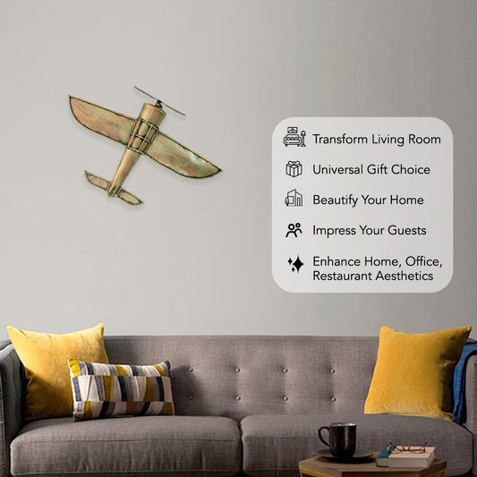 Metal Wall Decor for Living Room, Bedroom | Metal Wall Art Sculpture for Decorating Drawing Room Sofa Wall | Gift for Home Decor, Office Decor (Handpainted Aeroplane)