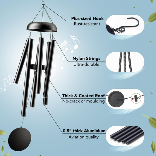 Bamboo Wooden Wind Chimes: Serene Music Sound for Home & Garden | Black