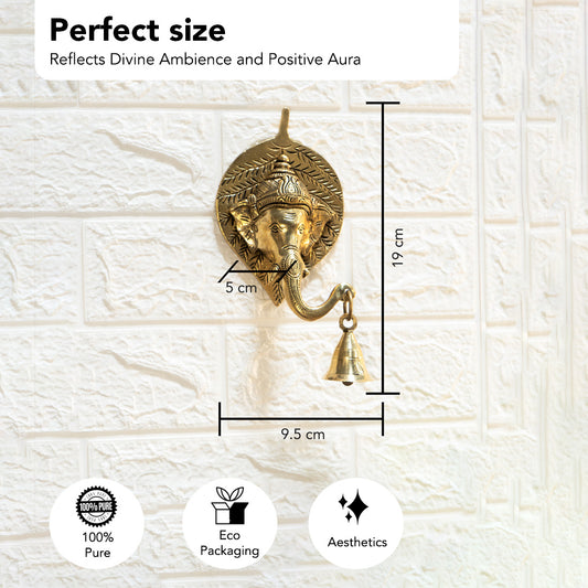 100% Pure Brass Ganesh Wall Hanging Bell for Home Decor | Main Door Hanging Decorative Items | Wall Hanging Ganesha Bell for Pooja Room | Vinayagar Wall Hanging Bell for Decoration