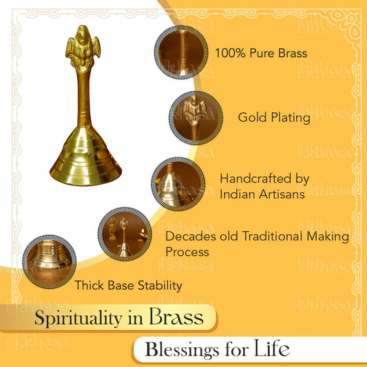 100% Pure Brass Garuda Ghanti for Pooja | Handcrafted Pooja Bell for Mandir | Pooja Ghanti for Home | Mandir Ghanti for Pooja | Ganti for Pooja | Puja Ghanti for Home (Size: 4 inch)