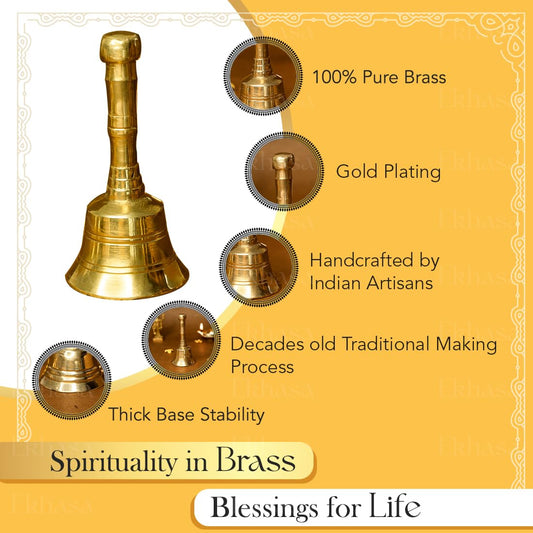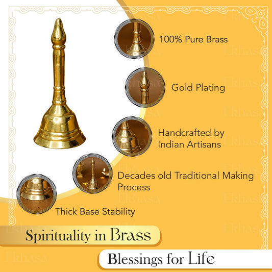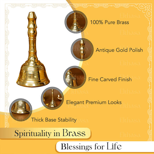 100% Pure Brass Gol Ghanti for Pooja | Handcrafted Pooja Bell for Mandir | Pooja Ghanti for Home | Mandir Ghanti for Pooja | Ganti for Pooja | Puja Ghanti for Home (Size: 4 inch)
