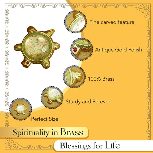 Brass Tortoise Figurine: Feng Shui for Good Luck with Shree Yantra & Kuber Yantra | Standard Size | Gold