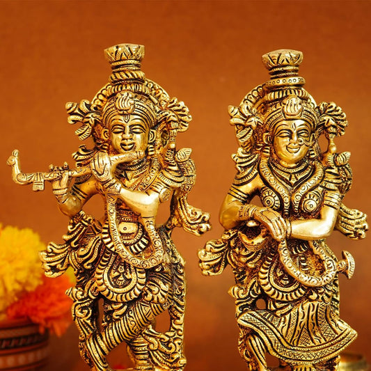 Combo: 100% Pure Brass Radha & Krishna Idols - Heavyweight, Traditional | 23.5 cm | Gold