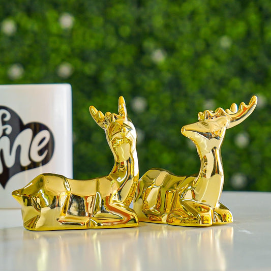Medium Pack of 2: Golden Deer Showpieces for Home Decor | Perfect Gift Items
