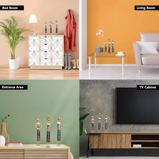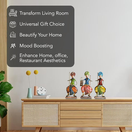 Dancing Dolls - Set of 3: Metal Showpieces for Home Decor | Handpainted Rajasthani Dancers | Large | Multicolour