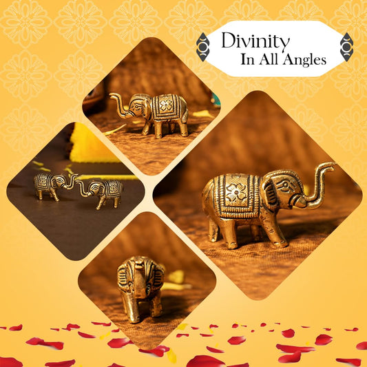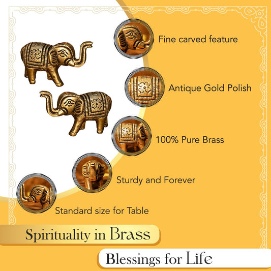 100% Pure Brass Elephant Idol Showpiece Figurine Feng Shui (Small Size) | Vastu Items for Home d??cor for Good Luck | Elephant Decorative items Show Pieces for Living Room (Set of 2)