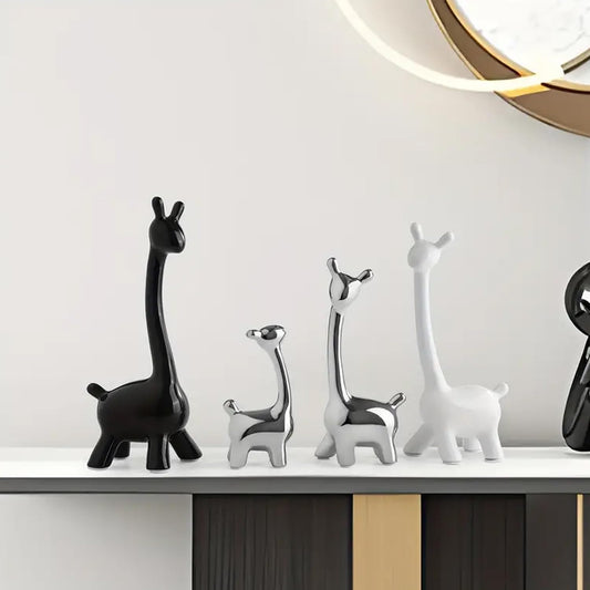 Giraffe Family Showpieces: Decorative Ceramic Figurines | 4 Pcs | Multicolour | Home Decor