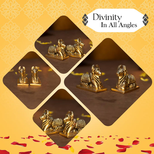 100% Brass Kamdhenu Cow | Nandi Idol for Pooja | Nandi Cow Show Pieces for Home Decor | Gai Vasru Murti for Vaastu and Feng Shui | Ideal Gift for Housewarming (Set of 2)