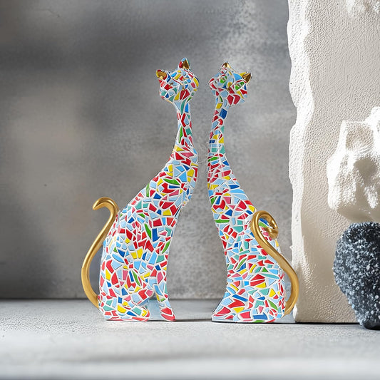 Cute Kitty Cats Showpieces (Set of 2): Decorative Home Accent | Ceramic | Multicolour