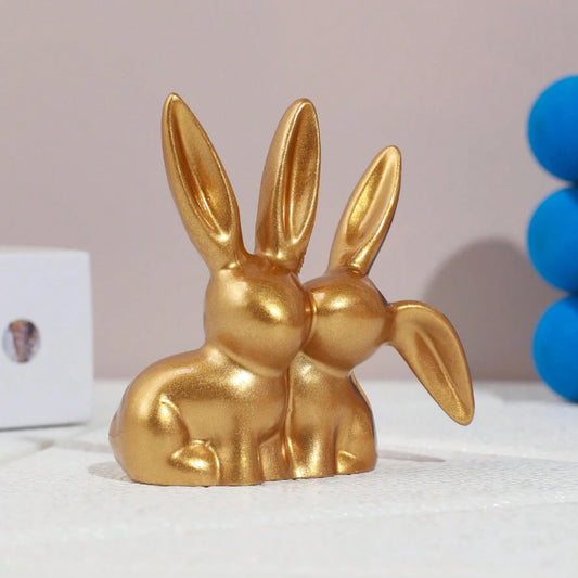 Rabbit Showpieces - Cute Aesthetic Home Decor for Living Room | 1 Piece | Golden Ceramic